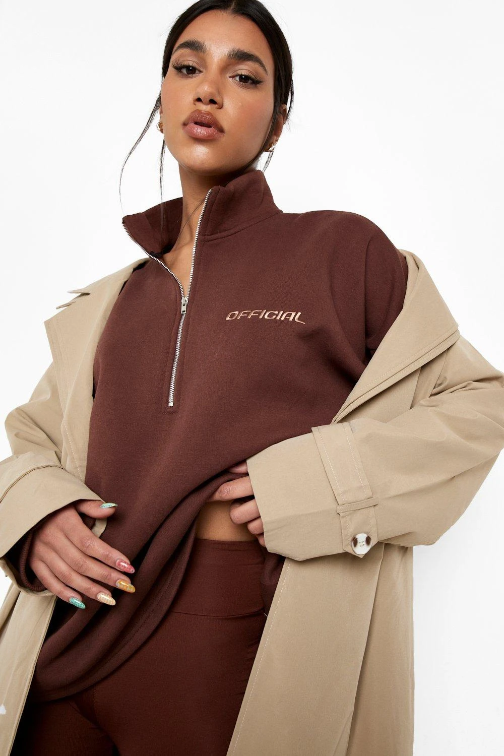 65 % BAUMWOLLE, 35 % POLYESTER. MIT ÄHNLICHEN FARBEN WASCHEN. MODELL TRÄGT GRÖSSE 38.