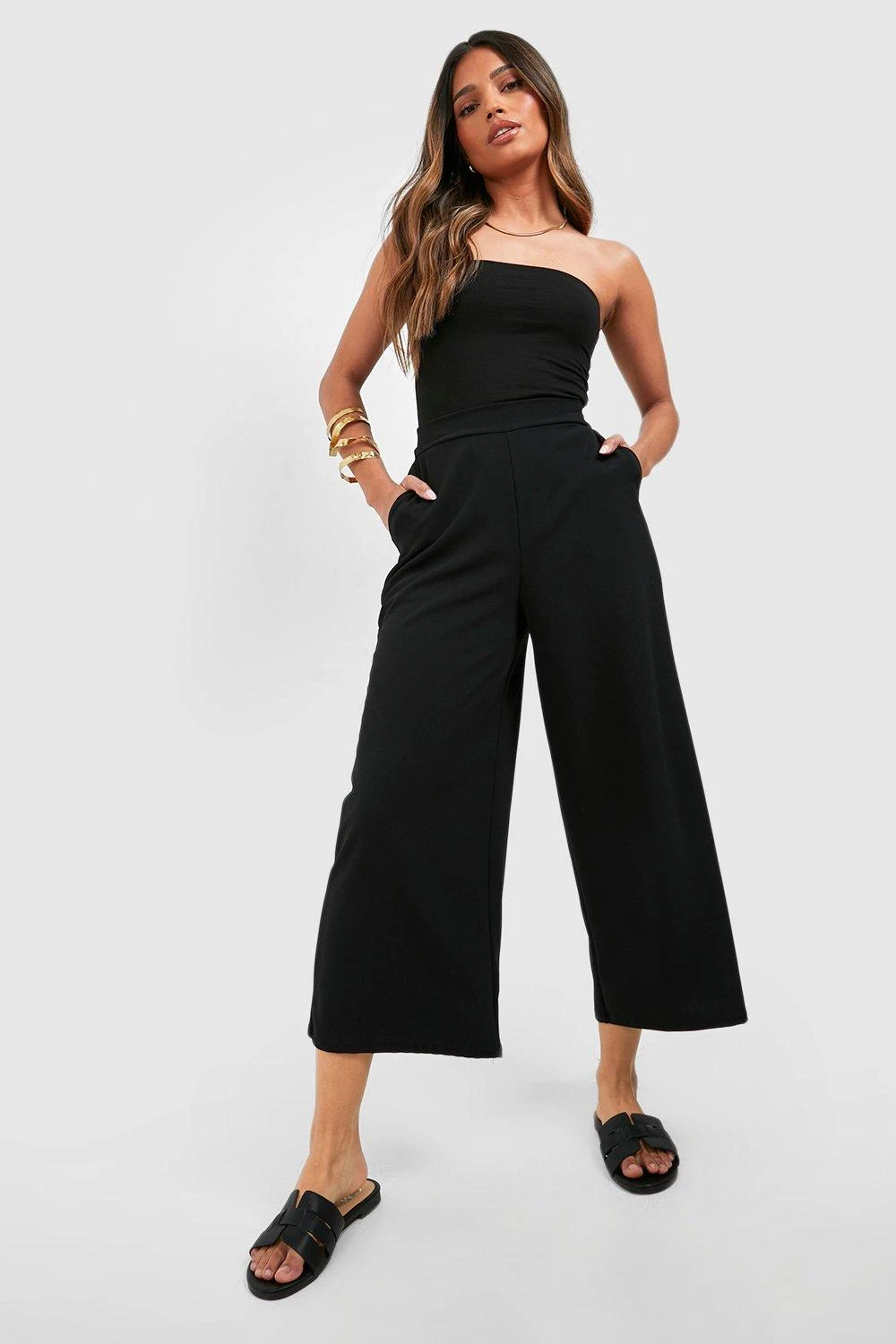 Hole dir mit einer weiten Hose den angesagtesten Style der Saison. Verlängere deine Silhouette mit der schmeichelhaften Form, die diese Hose mit weitem Bein und hoher Taille zu bieten hat. Kombiniere sie mit einem Slogan-T-Shirt und Turnschuhen für einen sportlich-luxuriösen Look oder style sie mit einem Blazer und Absätzen für dein nächstes Event. Es ist an der Zeit, deine Alltags-Outfit mit einem Paar Palazzo Hosen aufzuwerten.