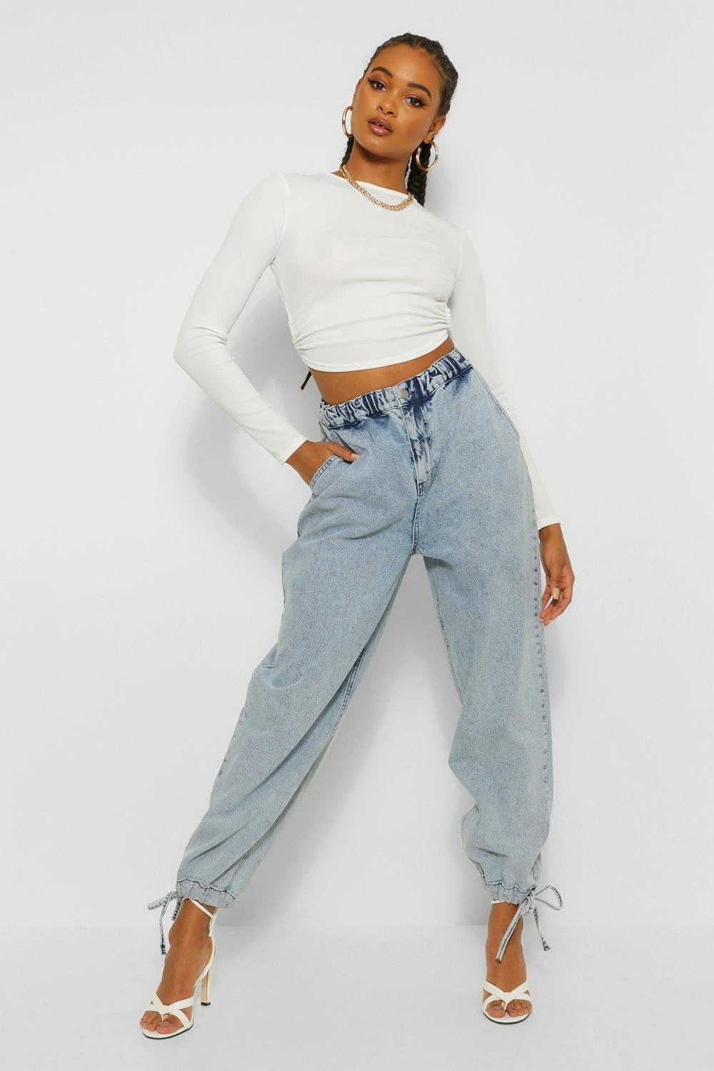 Dein neues Lieblingsstück für den Kleiderschrank ist da: die Denim-Jogginghose. Mit dem bequemen, elastischen Bund deiner Lieblings-Jogginghose und dem kultigen Denim mit Bündchen am Saum ist diese Jogger-Jeans die perfekte Wahl für den Alltag. Trage sie zum Ausgehen mit Heels und einem Cut-Out Oberteil oder für den ultimativen Streetstyle mit High-Top-Sneakers und einem einfachen Tanktop. Jeans mit mehr Komfort? Wir sind dafür.