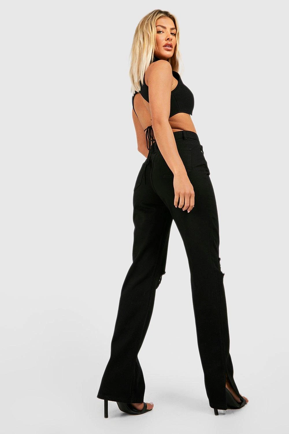 In dieser Saison sind Jeans mit geteiltem Saum total angesagt. Wenn du Schlagjeans liebst, aber ein Trend-Update willst, dann ist diese Jeans genau das Richtige für dich. Der geteilte Saum ist das A und O. Trage sie mit Riemchensandalen und einem Korsett-Top zum Auszugehen, oder trage sie lässig mit klobigen Turnschuhen für einen entspannten Tageslook. Jeans mit geteiltem Saum sind dein neues Lieblingsteil.