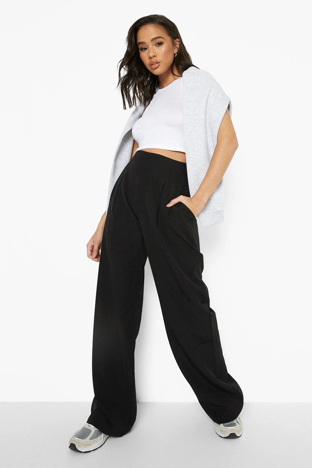 Hole dir mit einer weiten Hose den angesagtesten Style der Saison. Verlängere deine Silhouette mit der schmeichelhaften Form, die diese Hose mit weitem Bein und hoher Taille zu bieten hat. Kombiniere sie mit einem Slogan-T-Shirt und Turnschuhen für einen sportlich-luxuriösen Look oder style sie mit einem Blazer und Absätzen für dein nächstes Event. Es ist an der Zeit, deine Alltags-Outfit mit einem Paar Palazzo Hosen aufzuwerten.